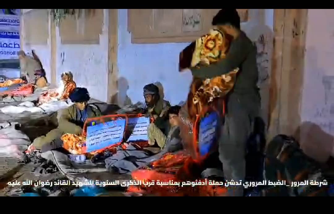 منتسبو الضبط المروري ينفذون مبادرة إنسانية لتوزيع أكثر من 500 بطانية على المحتاجين بصنعاء